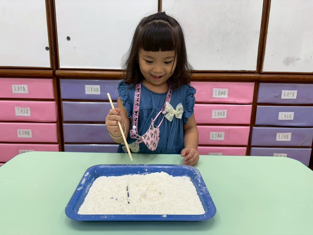 相簿名稱: 114.10.8主題活動-麵粉盤寫字畫畫